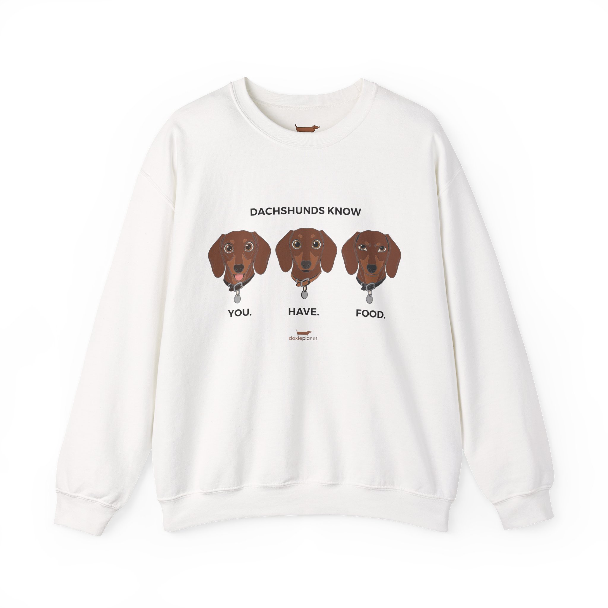Dachshunds Know Sweatshirt – Cute Dachshund Faces “They Know You Have Food” Crewneck